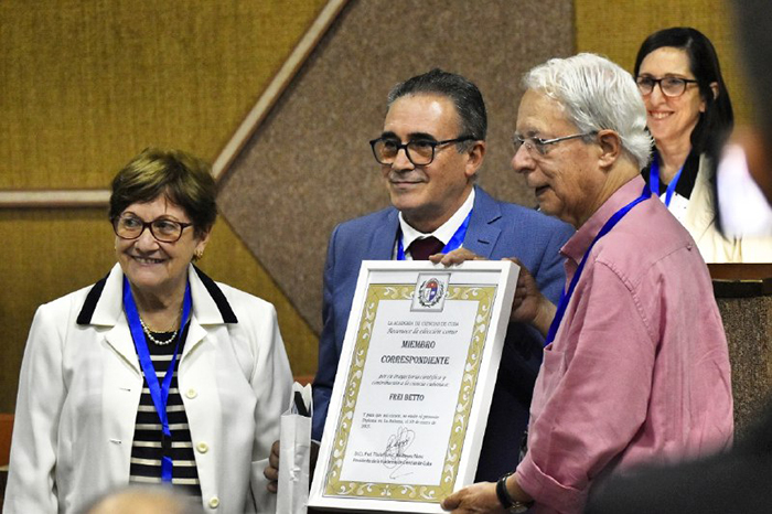 Durante la tercera jornada de la VI Conferencia Internacional Por el Equilibrio del Mundo, la Academia de Ciencias de Cuba otorgó la condición de miembro correspondiente al teólogo y escritor brasileño Frei Betto.