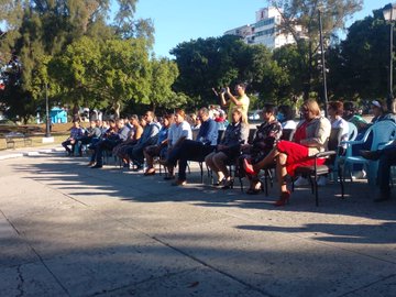 Presente en el homenaje a la mujer cubana Elena Aurora Rodriguez, fundadora de la FMC y quien fuera dirigente de la Organización en Plaza durante más de 30 años.