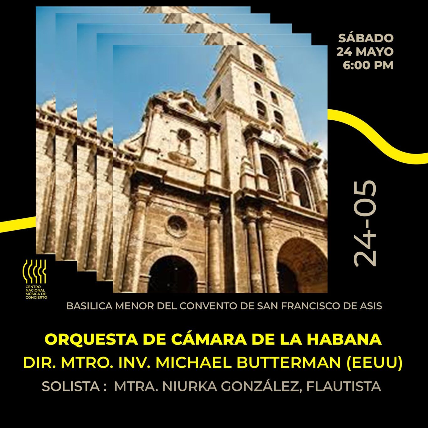 A las 18:00, (HORA LOCAL), es la cita que cuenta en el podio con el director estadounidense Michael Butterman, quien ha dirigido la agrupación cameral en otras oportunidades y estará como solista la reconocida flautista cubana Niurka González.