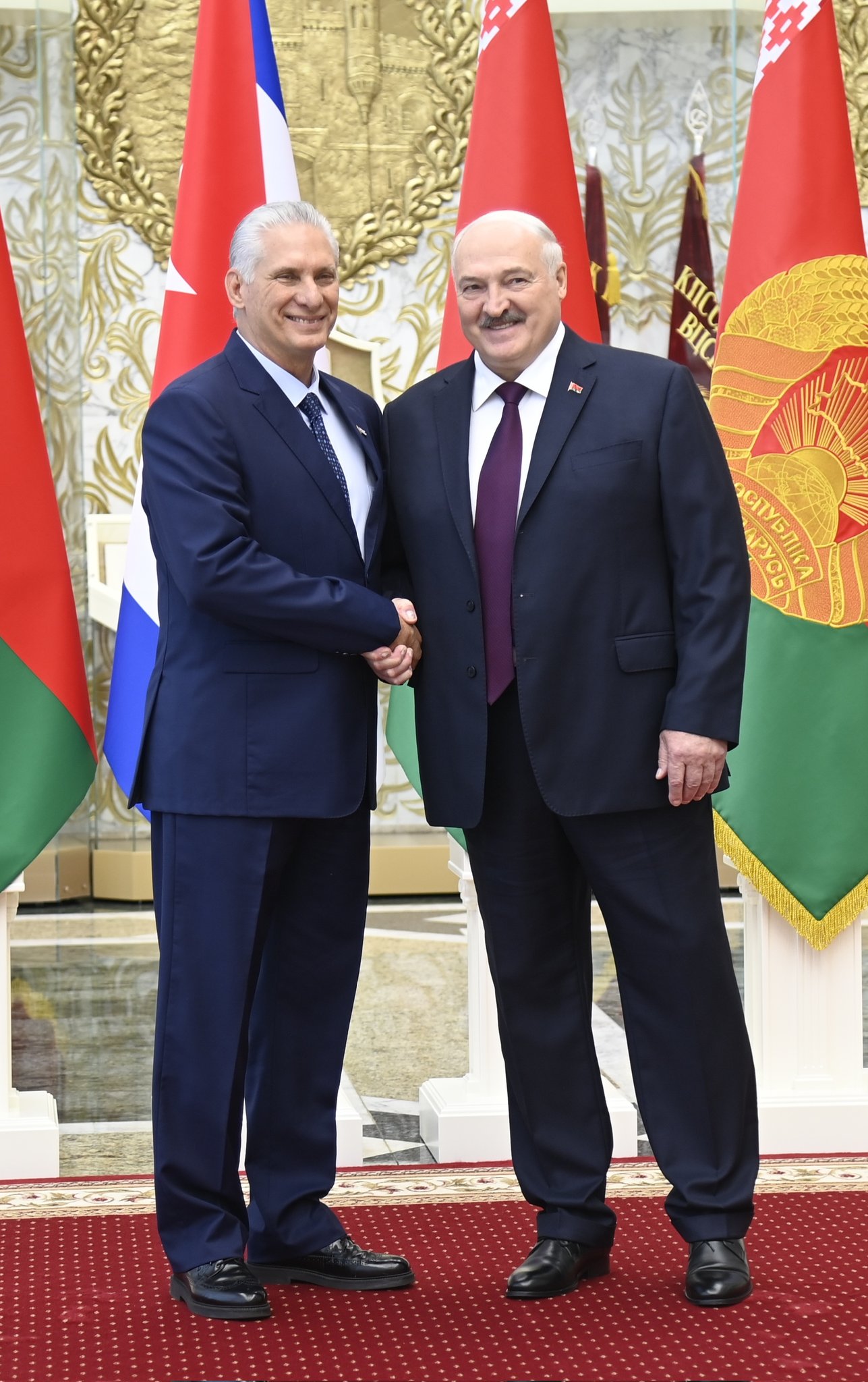 Muy grato volver a #Belarús y reencontrarnos con el Presidente Lukashenko, amigo invariable de #Cuba. Hoy, en visita oficial, acordamos fortalecer la cooperación.