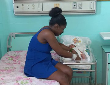 Las integrantes de la organización femenina prepararon una canastilla sorpresa que fue entregada este sábado a la primera Bebé que nació en sala de obstetricia del Hospital General Docente Enrique Cabrera Cossío.