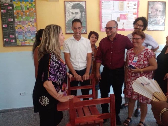 El recorrido de la titular de educación en Cuba inició hoy en la escuela primaria Unión Internacional de Estudiantes ubicada en el Vedado habanero y reinaugurada luego de una reparación capital.