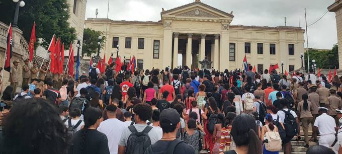 Una ofrenda floral en el monumento a Julio Antonio Mella, la marcha de las banderas por la Colina universitaria frente a la escalinata y hasta la Facultad de Derecho, formaron parte del tributo a esta simbólica fecha, que marcó la formación de quien se convertiría en guía del pueblo cubano para alcanzar la victoria definitiva.