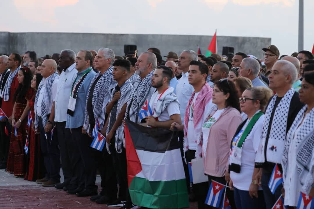 El Presidente de la República, Miguel Díaz-Canel Bermúdez, Primer Secretario del Comité Central del Partido Comunista de Cuba encabeza en la Tribuna Antiimperialista José Martí de La Habana, el acto que reafirma la solidaridad de Cuba con el pueblo de Palestina, al que asisten más de 100 mil habaneros.