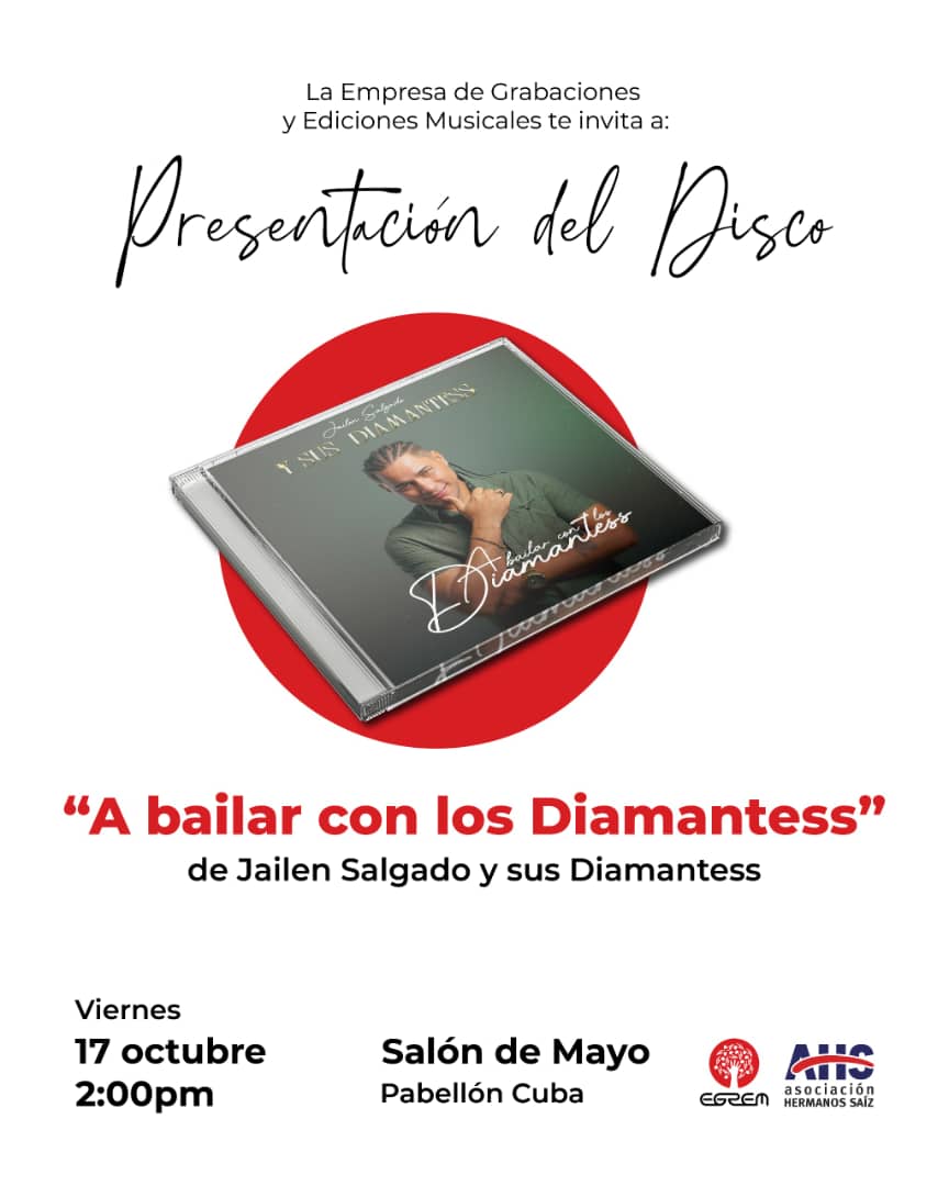 Regalar al público un producto musical que pueda ser del disfrute, tanto para un bailador como para quien prefiere solamente escuchar buena música, es uno de los propósitos del joven músico Jailen Salgado Cordero, director de la agrupación Diamantess, quien se presentará en el espacio Viernes del Disco en Cuba, una propuesta de la Empresa de Grabaciones y Ediciones Musicales, (Egrem), en el Salón de Mayo, del Pabellón Cuba, en el corazón de la Rampa habanera.